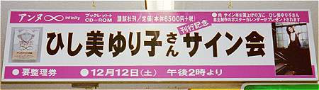この日はこの後、難波・旭屋書店でもサイン会がありました。そして次の日は神戸と京都でもサイン会の予定になっています。ひし美さん、ハードスケジュールで大変ですけどがんばって下さいね。そう言えば、この日の朝の生放送で黒部進さんご一家が出演されていましたが、もしかすると一緒に大阪で盛り上がっているのかな〜?