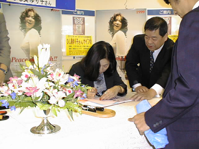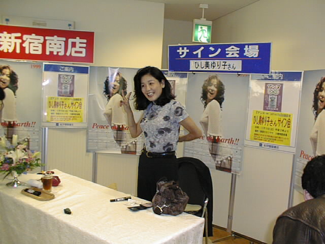 「あら、若いわねぇ、おいくつ??」「○○歳です」「うっそぉぉ、見えないわよ〜〜」というように、いつものようにサイン会場中にひし美さんの声が響きわたり、途中ひし美さんが上着をお脱ぎになるといううれしいイベントもある中、始終なごやかな雰囲気でサイン会が進んでいきました。