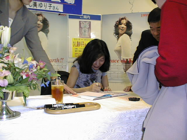 13時50分、ひし美さんが小走りに登場。みんなで拍手でお迎えしました。まずはマイクを手にご挨拶。そして、待ちわびたサイン会が始まりました。